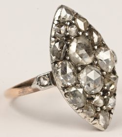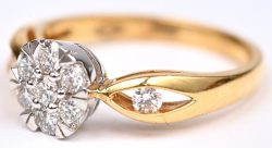 #260Een 18 kt wit-en geelgouden ring bezet met diamanten oude slijp met een gezamenlijk gewicht van +- 1,5 ct.