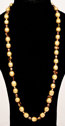 A necklace with colored pearls and brown baroque pearls with a silver clasp.No longer availableDim. L:31 cmEstimate: € 80 / 120 -