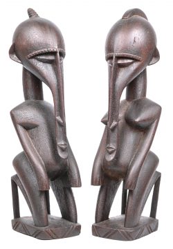 A pair of African figurines, man and woman.Dim. Hoogte 28 cmEstimate: € 30 / 50 -