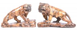 Two tigers made of brown jade.Dim. H 9, B 15 cmEstimate: € 80 / 120 -