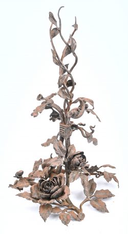 A wrought iron rose and oak branch. Signed I. Janssens.Dim. Hoogte 43 cmEstimate: € 50 / 70 -
