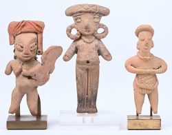 #541Drie aardewerken beeldjes in precolumbiaanse stijl.