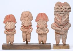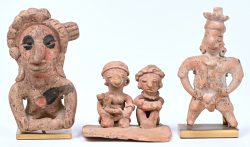 #397Vier aardewerken beeldjes in precolumbiaanse stijl.