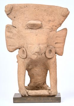 #337Een aardewerken beeldje in precolumbiaanse stijl van een regen en vruchtbaarheidsgod.
