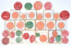 #262Een lot van 32 aardewerken reproducties van oude lakzegels, van Maria van Bourgondië tot Hendrik 1, hertog van Lotharingen.