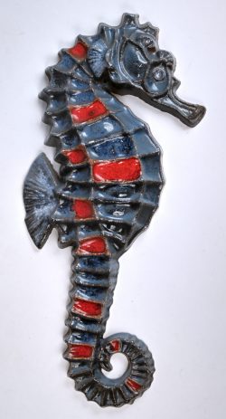 #51Een vintage keramisch zeepaard, achteraan gemerkt ‘Karel’.