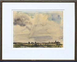 #128‘Hoevezicht’, aquarel op papier. Onleesbaar getekend.