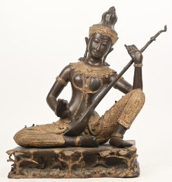#281Een oosterse muzikant, gedeeltelijk verguld brons.