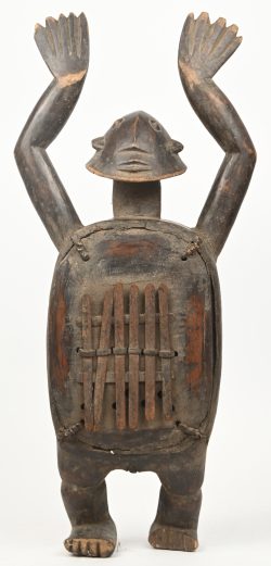#401Een muziekinstrument in de vorm van een antropomorfe schildpad.