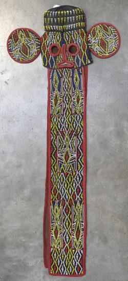 #477Een “Djundja” stoffen paaardenmasker versierd met kleine pareltjes. Bamileke, Kameroen.