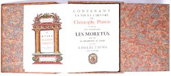 #423‘Le Musee Plantin Moretus par Max Rooses, conservateur’, een luxe uitvave met herdrukken naar originele plaat en ingekleurde prenten. Uitgegeven door G. Zazzarini & Co., Anvers. Nr. 3 uit een oplage van 60 exemplaren. De buitenste koffer is te herstellen.