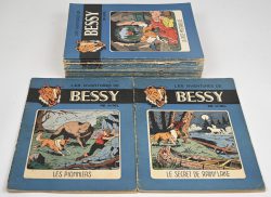 Bessy, 22 French-language albums. The pioneers, the secret of Rainy Lake, the mysterious track, Bessy's fear, the last fawn, the golden butterflies, the unknown, troubles in Redskin City (described), the hidden loot, the secret cargo, the beating hooves, the prediction (x2), the fugitive, the war axe, the lost ones, the three arrows (x2), the ambush (x2), Moh-Wapi the guide & the canyon of the squirrels. In read condition.Dim. 30/22 cmEstimate: € 50 / 80 -