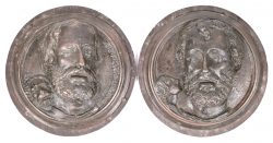 Two bronze portraits in high relief. One of the panels bears the text 'SVB P P Lucio Cechino'.Dim. Ø 21 cmEstimate: € 80 / 120 -
