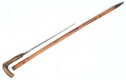 An antique walking stick with hidden swords.Dim. l 77 cmEstimate: € 100 / 150 -