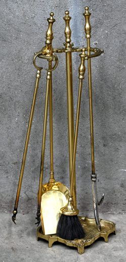 A set of brass fire irons.Dim. h 71 cmEstimate: € 40 / 60 -