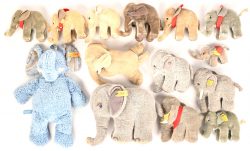 #192Veertien pluche olifanten waarvan negen gemerkt Steiff, de overige vijf met de knop manco.