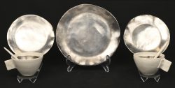 A tête-à-tête in partially glazed biscuit, monogrammed PK.Dim. Ø 16 cmEstimate: € 15 / 25 -