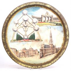 A vintage tray featuring sights of Brussels.Dim. Ø 31,5 cmEstimate: € 15 / 20 -