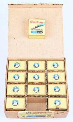 #121Een vintage lot van 11 volle inktpotten in originele verpakking, grote doos met 12 doosjes waarvan 1 lege.