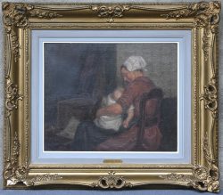 #54Period: 1919-2002‘Geborgenheid’, olieverf op doek. Getekend E. Heirman.