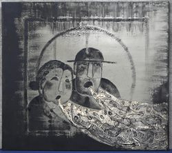 #544Thankawiel, een schilderij, gemengde techniek op gemaroufleerd doek.