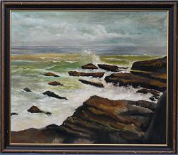 #539“Zicht op zee”. Een schilderij, olieverf op doek, niet gesigneerd.