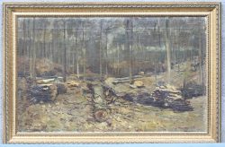 #229Period: 1867-1955“Boszicht”. Een schilderij, olieverf op doek. Onderaan gesigneerd.