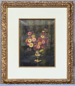 #444‘Bloemenvaas’. Olieverf op doek, getekend.