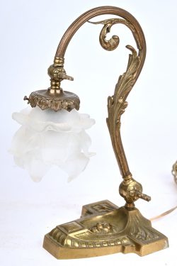 A bronze desk lamp with an opaline glass shade.Dim. Hoogte 32 cmEstimate: € 30 / 50 -