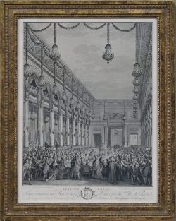 #282‘’Le Festin Royal, Fètes données au Roi et la Reine, janvier 1782’. Dessiné d’apres nature et gravé par J. M. Moreau. Een 18e eeuwse gravure.