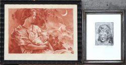 'Girls Portrait' & 'Woman with Child'. A monoprint and a chalk drawing. Signed A. De Coninck and L. Weyts.Dim. 24/34 cmEstimate: € 30 / 50 -