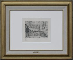 'View of lock and bridge,' a monochrome etching. Signed A. Baertsoen.Dim. 22/26 cmEstimate: € 50 / 75 -