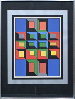 #554‘Abstracte compositie’, kleurenlithografie, Getekend; Jan Dijker, 1993. Nr. 45 uit een oplage van 50 exemplaren. Jan Dijker was een Nederlands kunstenaar die vooral bekend werd door zijn monumentale en kerkelijke kunst.