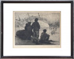 #222Period: 1910 - 2006“Bootjes - Antwerpen”, een ets, genummerd 74/100, gesigneerd buiten de plaat.