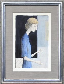 “Pensive Woman with Blue Dress,” a color lithograph, signed E.A. outside the plate.Dim. 41 x 26 cmEstimate: € 60 / 80 -