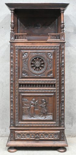 #215Een halfhoog Bretoens kastje met gesculpteerde panelen. 1 deur en 1 lade.