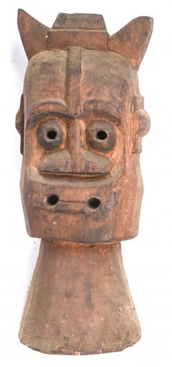 A wooden Tolokoshi head, origin; South Africa.Dim. Hoogte 54 cmEstimate: € 50 / 70 -