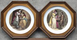#200Twee Hollandse tegels met waterzichten in massief eikenhouten kader.