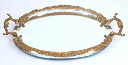#288Een dienblad met geslepen spiegel en messing delen.