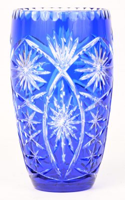 #598Een Boheems kristallen vaas, blauw in de massa gekleurd.