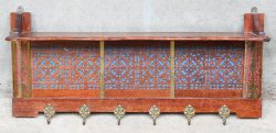 #157Een wandkapstop met hoedenplank. Hout en koper.