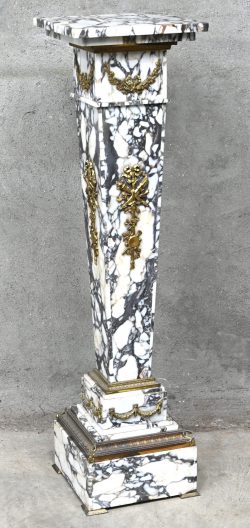 #96Een marmeren pied-de-stalles met verguld bronzen elementen. Roterend blad.