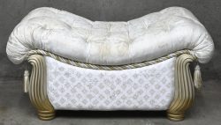 An ottoman in a romantic style, fabric in need of refreshing.Dim. 55 x 105 x 60 cmEstimate: € 20 / 30 -