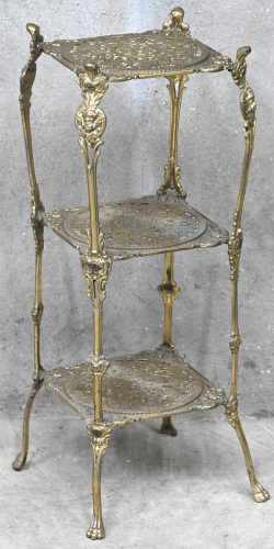 A brass plant stand with 3 tiers in romantic style.Dim. 74 x 27 x 27 cmEstimate: € 40 / 60 -