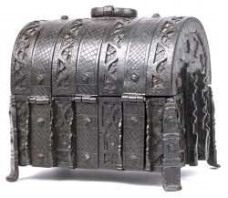 An old metal case with secret lock.Dim. 118 x 21 x 16 cmEstimate: € 40 / 60 -