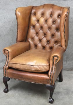 #206Een lederen oorfauteuil met gecapitoneerde rugleuning.