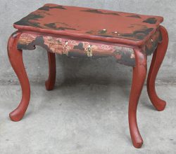A Chinese low table of red-painted wood. Decorated with figures in a landscape.Dim. H 51, B 70, D 45 cmEstimate: € 40 / 60 -