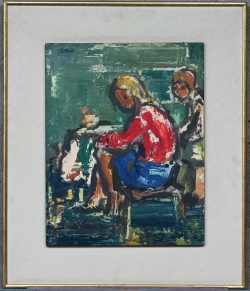 #345“Schoolmeisjes”. Olieverf op paneel. Onleesbaar gesigneerd/