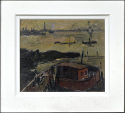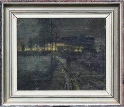 #472‘Lichters op de Schelde’, olieverf op gemaroufleerd doek. Getekend Van Heesvelde H.