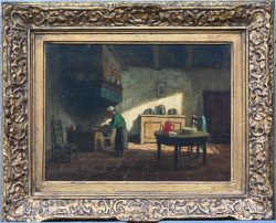 #335“Boereninterieur met mooie lichtinval”. Olieverf op doek. Gesigneerd